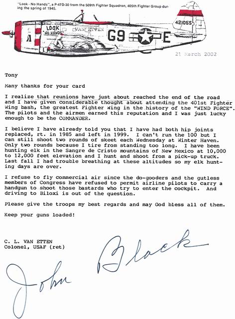 This letter was written to Tony Gagliano after the 2003 401st Reunion |