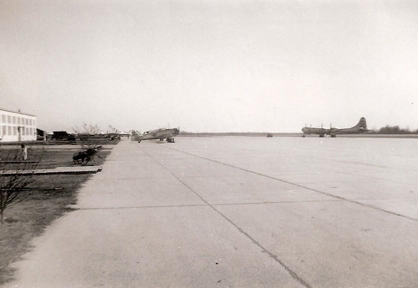 AT-6 AND B-29 IN FRONT OF BASE OPS. THE T6 WAS